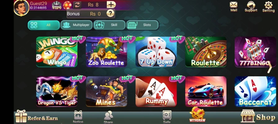 I love the wide range of games like Ludo, Dragon vs Tiger, and Roulette.