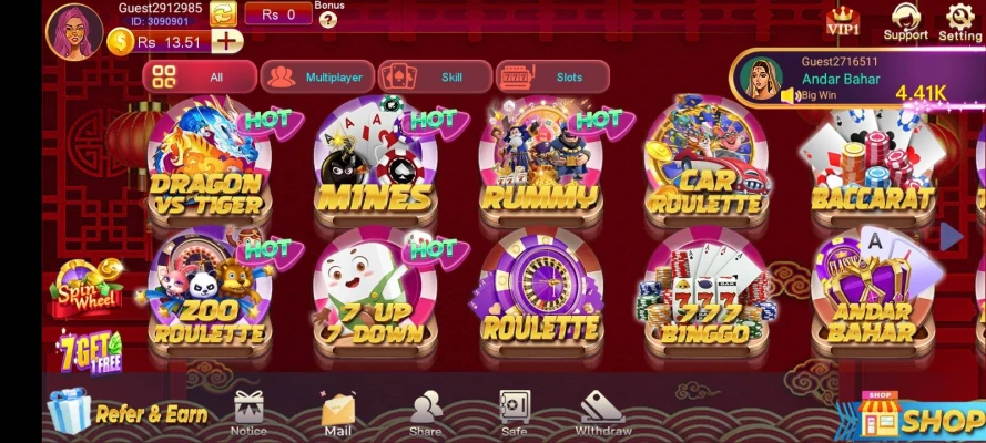 Besides Ludo, you can enjoy poker, roulette, dragon tiger, 7 up down, fortune gem, and many more exciting options.